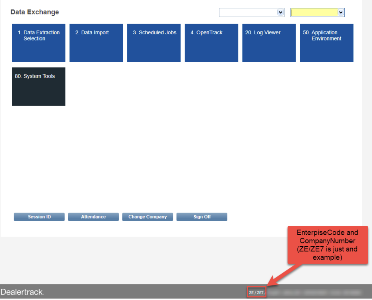 Send AutoHub your Enterprise Code and Company Number. This is found at the bottom of the screen in your DealerTrack DMS. Example: ZE/ZE7