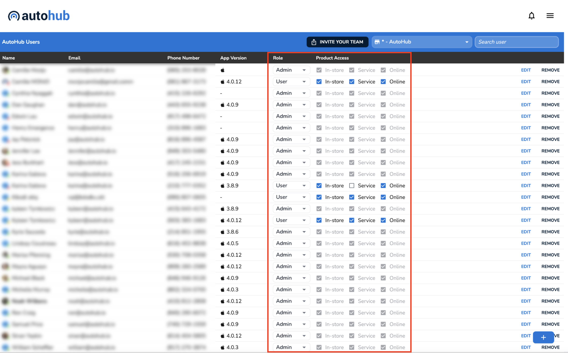 This Knowledge base article is dedicated to informing existing AutoHub admins how to add and remove users to and from an account in the AutoHub web app. Users are added and removed in the users tab of the AutoHub web app.