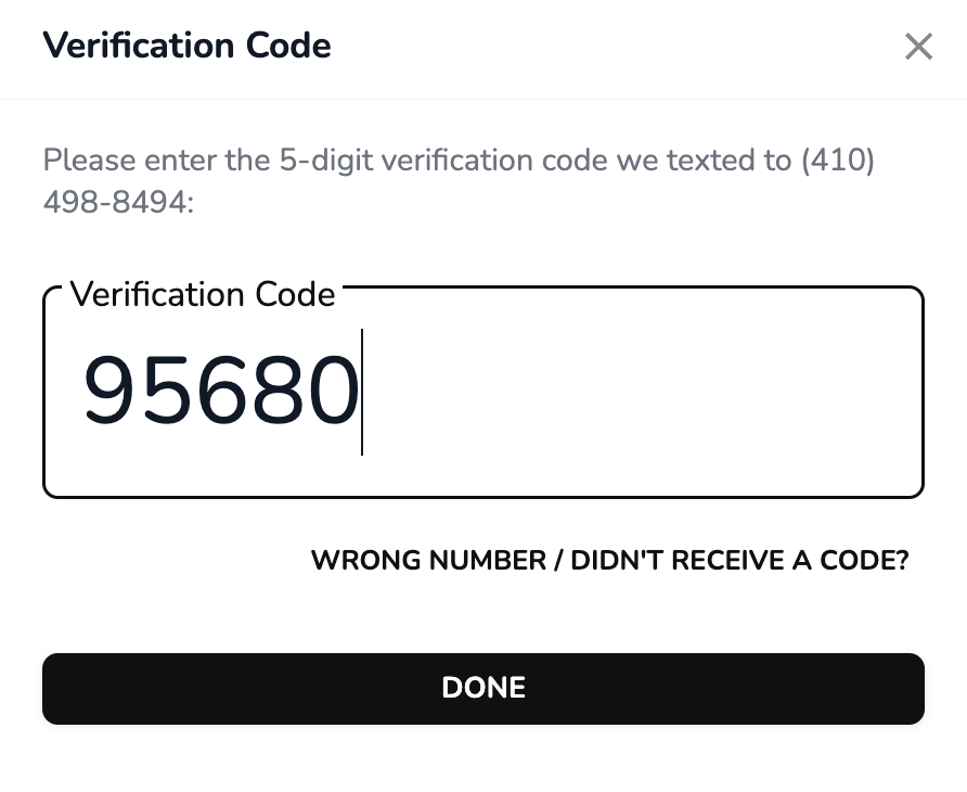 Enter the phone number for the offer recipient. This phone number will receive a verification code to confirm that the lead is valid. There is a prompt to enter the verification code.